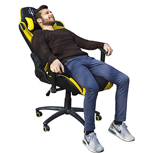 Triton X3 Sedia gaming Ergonomica, cuscino lombare e poggiatesta, Girevole e regolabile in altezza, Schienale reclinabile, Braccioli regolabili, Nera-Gialla, P050-X3-BY