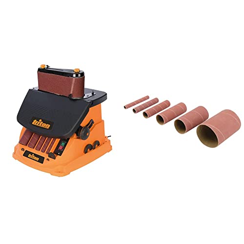 Triton TSPST450 Levigatrice a Mandrino Oscillante, Arancione & TSS80G - Set di manicotti in tela al corindone, per levigatura, 6 pz.