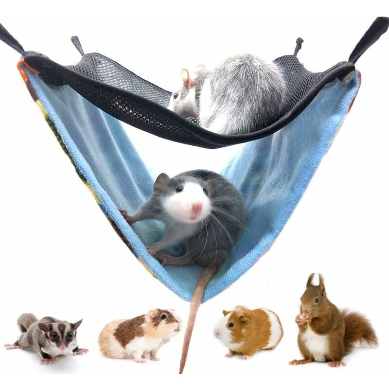 Adatto per animali domestici fino a 8-20 cm di lunghezza (coda esclusa), di peso non superiore a 2,5 kg, come conigli, gattini, criceti, porcellini d'India, cincillà. Materiale: Lo strato superiore è in sottile tessuto a rete traspirante, il secondo strato è in morbida flanella corta. Design: I ganci a 4 angoli rendono l'amaca più stabile e comoda da installare nella gabbia, il tuo animale domestico può giocare sull'amaca in sicurezza. Applicazione: Adatto per l'uso tutto l'anno, lo strato superiore è traspirante e fresco e lo strato inferiore è morbido e caldo. Istruzioni di lavaggio: Il lavaggio in lavatrice è accettabile. Per la pulizia, puoi semplicemente usare un panno umido per lavare il supporto. Confezione: 1 pz