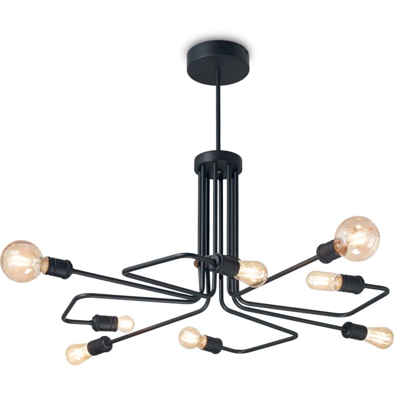 Lampadario con montatura interamente in metallo con finitura nero opaco o ottone invecchiato. Ø 92 x H 66 cm 8 lampadine da max 60W attacco E27 non incluse IP20