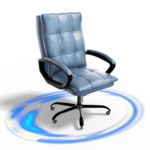 TRIUMPHKEY Sedia da scrivania in pelle blu, sedia da ufficio, sedia per computer sedia da scrivania executive sedia girevole altezza regolabile con rotelle braccioli 150 kg (Blu)