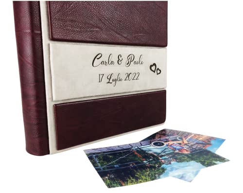 TriVin Art Album Fotografico Artigianale in Alcantara e Similpelle, Personalizzabile con Incisione. Ideale per Qualsiasi Evento. (bordò/Sabbia)