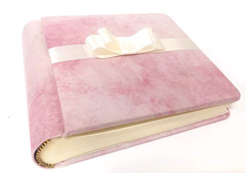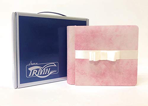TriVin Art, Album Fotografico Artigianale 18 x 16 cm, 40 Pagine Avorio, con velina Protettiva. Ideale per Battesimo, Comunione, Matrimonio e fotoricordi. (Nuvolato/Rosa Antico)