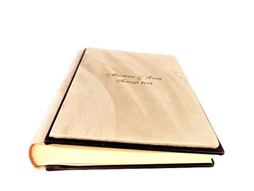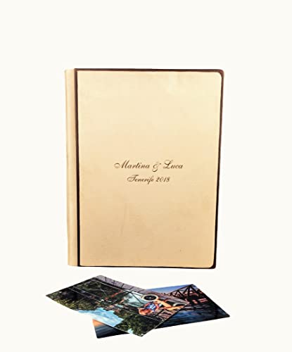 TriVin Art, Album Fotografico in Similpelle, con Pannello pregiato Effetto Alcantara Vari Colori, Personalizzabile con Incisione. Ideale per Qualsiasi Evento. (Alcantara Beige, Profilo Marrone)