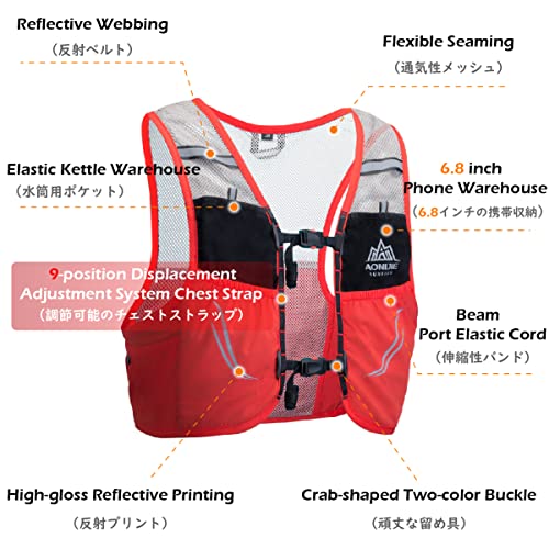 TRASPIRANTE - Zaino da corsa con spallacci ampi offre una comodità ottimale e l'aevaporazione del sudore, evitando lo stress e l'umidità. Le cinture con fibbie regolabili rendono aderenti alle curve corporali e sono utili per ridurre gli scatti negli spostamenti