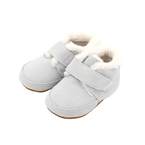 TRIWORIAE - Scarpe Bambino in Morbida Pelle Scarpine Primi Passi Infanzia Scarpette Neonato Bambina Ragazza Ragazzo Grigio L: 12-18 Mesi