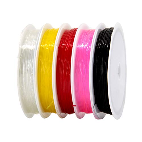 TRIXES Confezione da 5 filo elastico colori assortiti, perle gioielli bracciali - 8 metri filo da 1 mm