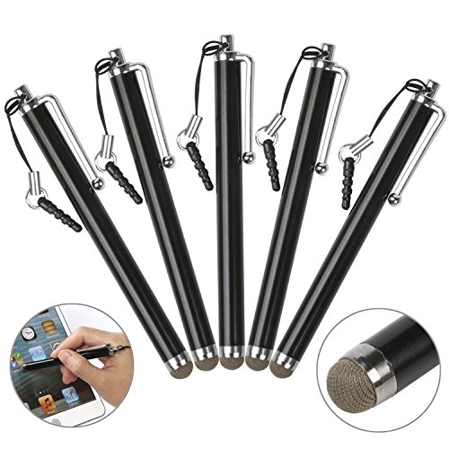 TRIXES Confezione da 5 penne stilo nere con punta in microfibra per smartphone e tablet, penne capacitive per touch screen.