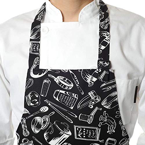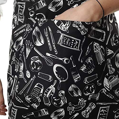 TRIXES Grembiule Long Chef Peculiar Design Nero - Grembiule Cuoco - Cottura / Cottura / Torrefazione / Barbecue - Chiusura a Cravatta - Grembiule Modelado del Cocinero