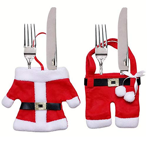 TRIXES Set da 6 pezzi porta posate a forma di vestito di Babbo Natale per la cena di Natale.