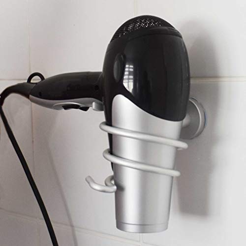 TRIXES Porta Phon - Porta Asciugacapelli da parete supporto asciugacapelli - Porta asciugacapelli per uso professionale o domestico - Colore del supporto argento spazzolato, viti di fissaggio incluse