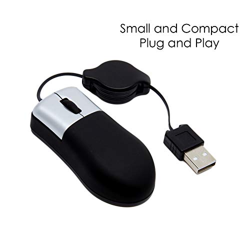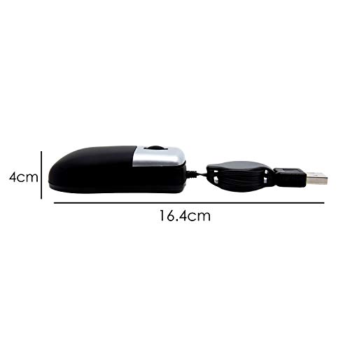 Trixes Retrattile Piccolo Mini Travel Mouse Elegante con Optical 3 Button e USB al computer portatile Pc Argento nero