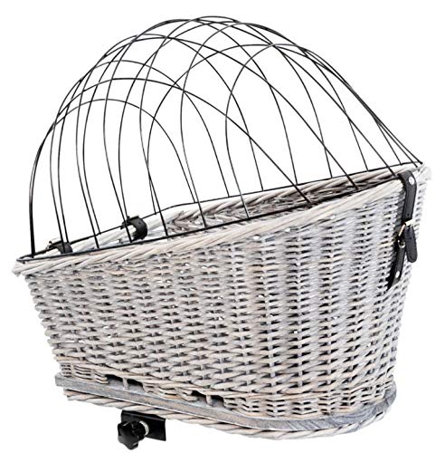 Trixie - Cestino per Bicicletta con Reticolo per scaffale, in salice/Metallo, 35 x 49 x 55 cm, Grigio, 2,259 kg