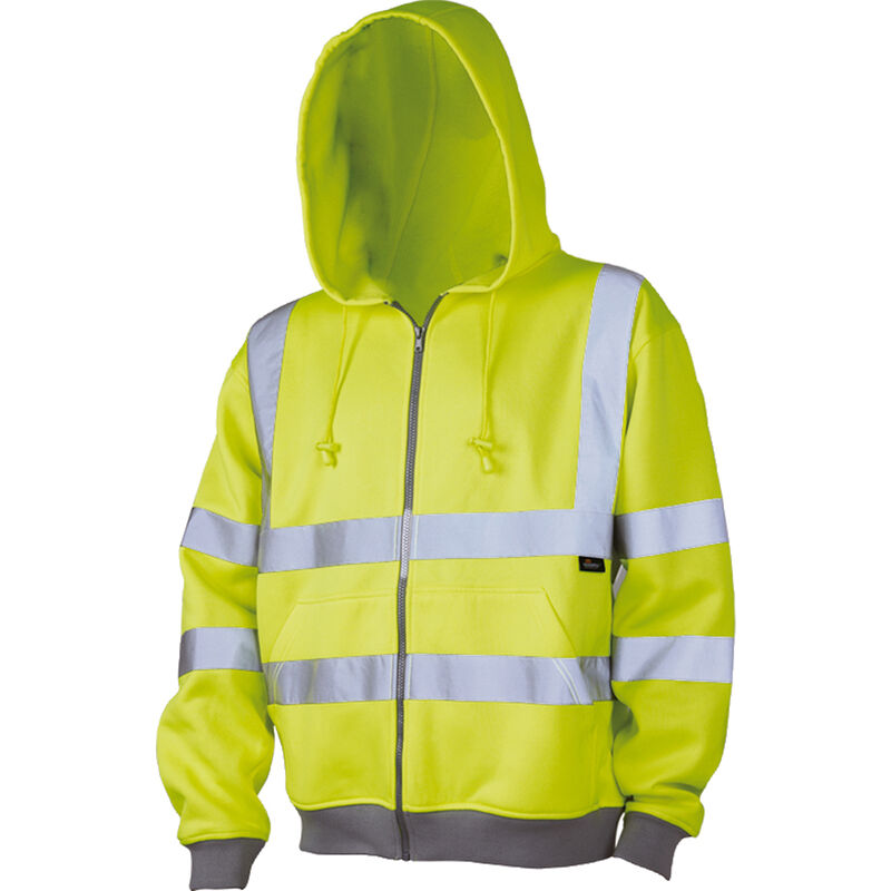 VWFC14 Giacca di felpa 2 strisce riflettenti larghe 5 cm che corrono intorno al busto e alle braccia e 1 x 5 cm ciascuna sulle spalle morbida, ruvida all'interno cerniera frontale Cappuccio con coulisse Estremità fianchi e maniche con polsini a coste Borse: 2 tasche laterali Caratteristiche tecniche: DIN EN ISO 13688:2013 - Indumenti di protezione - Requisiti generali DIN EN ISO 20471:2013, materiale di fondo classe 3 almeno 0,8 m2 materiale retroriflettente almeno 0,2 m2 Dati dell'articolo: Articolo n.: VWFC14 + colore + taglia Taglie: S - 3XL Colore: giallo luminoso (Y), arancione luminoso (O) Materiale: 65% poliestere, 35% cotone, 290 g/m2 Contenuto: 1 pezzo Istruzioni per la cura: Lavare max 25 volte! Vizwell, DIN EN ISO 20471:2013 Classe 3, DIN EN ISO 13688:2013, 2 strisce riflettenti larghe 5 cm che corrono intorno al busto e alle braccia e 1 x 5 cm ciascuna sulle spalle, morbide, ruvide all'interno, cerniera frontale, cappuccio con coulisse, fondo manica e fondo manica con