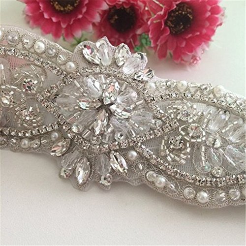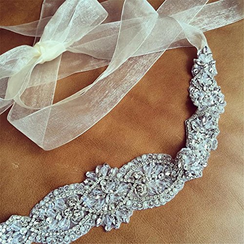 TRLYC - Fusciacca per abito da sposa, con diamanti sintetici applicati, colore trasparente, Altro, Ivory, 45.0cm x 5.5cm