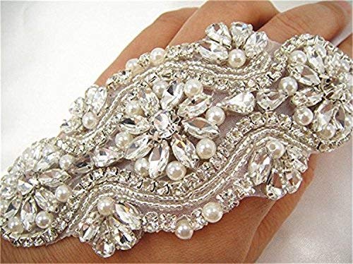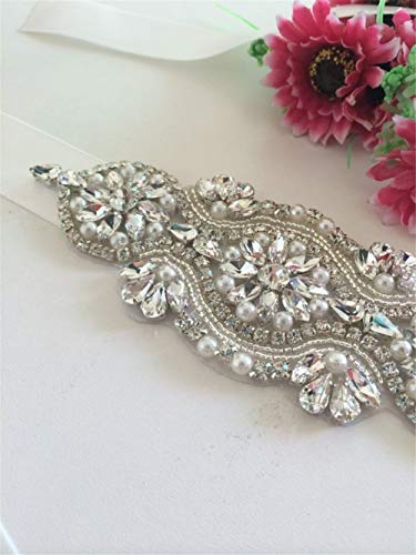 TRLYC - Fusciacca per abito da sposa, con diamanti sintetici applicati, colore trasparente Silver Ribbon