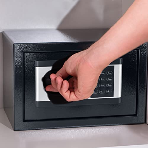 TRMLBE Cassaforte da 22 l, per la casa, cassaforte elettronica, 35 x 25 x 25 cm, con password digitale e 2 chiavi di sicurezza, cassaforte da parete per soldi gioielli, colore nero