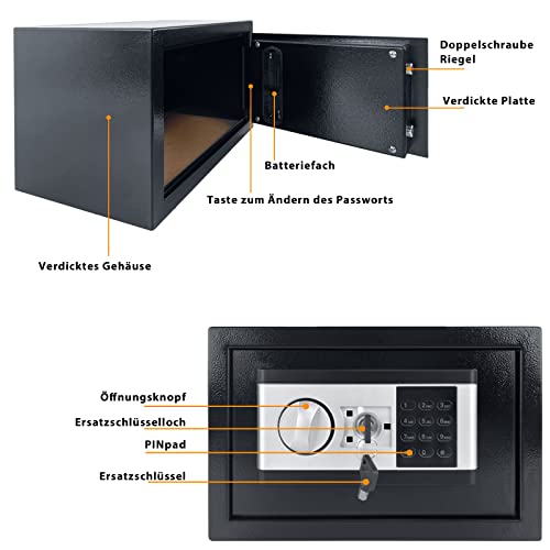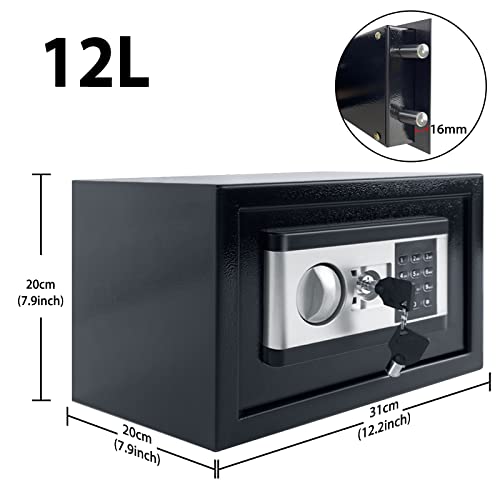 TRMLBE Cassetta di Sicurezza Domestica da 12 Litri Cassetta di Sicurezza Elettronica con Password Digitale e 2 Chiavi di Sicurezza per Denaro e Gioielli - Nero, 31x20x20cm