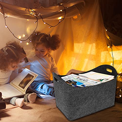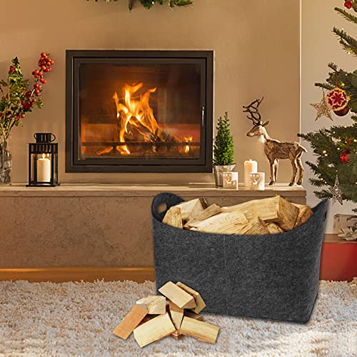 TRMLBE Cesto per Legna da Ardere pieghevole con manici per il trasporto Borse in feltro Shopper Borsa per legna da ardere giornali Borsa per la spesa 55 x 30 x 40 cm - 2 pezzi antracite