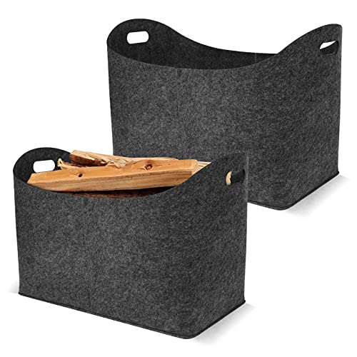 Cestino per legna da camino in feltro con manici - Set da 2, Dimensioni: 55 x 30 x 40 cm, Colore: Antracite, Portata: fino a 60 kg, Può contenere molti oggetti, Ottima capacità di carico