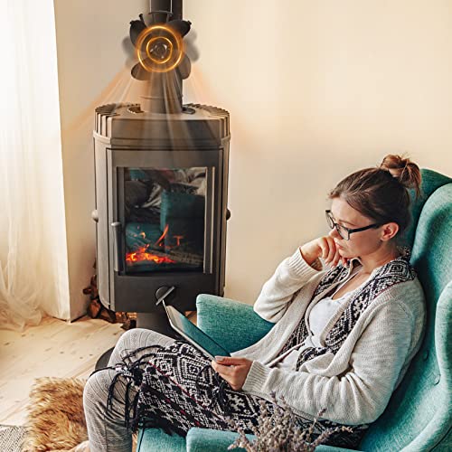 TRMLBE Ventilatore per Caminetto a 4 Pale Ventilatore Silenzioso per Stufa Ventilatore per Camino Ventilatore Ecologico senza Alimentazione con 2 Anelli Fissi, Ventilatore per Stufa a Legna