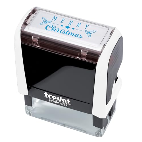 Trodat - Timbro Collezione Happy Christmas, Impronta MERRY CHRISTMAS, Creativo Decorativo Printy 4912 Autoinchiostrante, Colore Timbro Bianco, Cartuccia Inclusa di Colore Blu