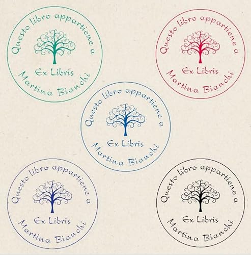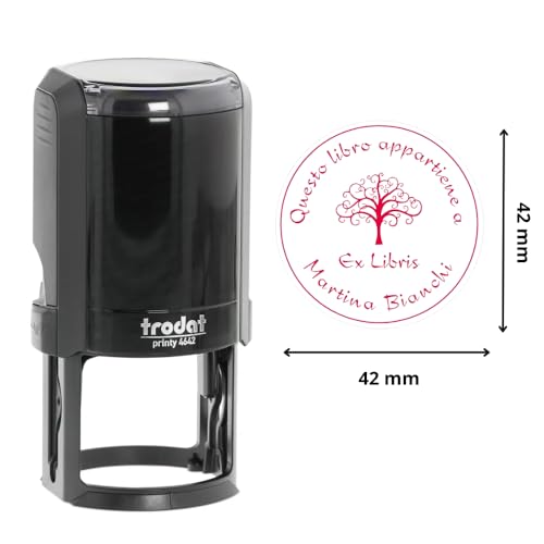 Trodat Timbro Ex Libris Monogramma PERSONALIZZATO "Albero della Vita", Impronta Rotonda Ø 42 mm, Autoinchiostrante Printy, Libri, Biblioteca, Club del Libro (Impronta Rossa)