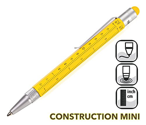 TROIKA Construction - Mini penna a sfera con righello in centimetri e pollici - Pennino Touch - (Giallo)