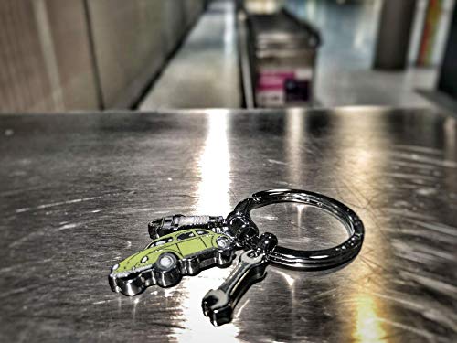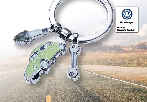 TROIKA KR19-03/CH - Portachiavi con 3 ciondoli - licenza ufficiale Volkswagen - Maggiolino - Regalo nostalgico - lucido - verde, argento - originale