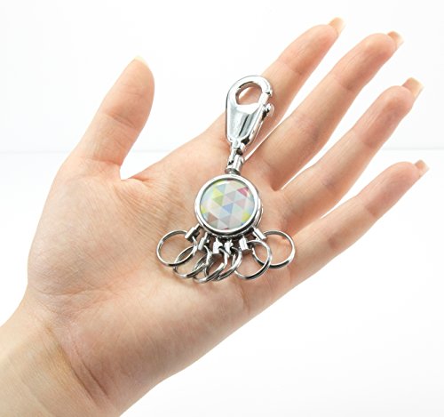 Con moschettone e 6 anelli sganciabili (diametro: 13 mm). Confezionato in scatola regalo di alta qualità - Dimensionsi totali: 90x25x9 mm, 52 g