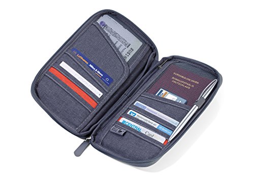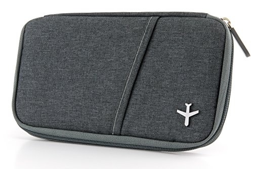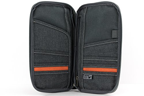 TROIKA Safe FLIGHT TRV20/GY - Custodia per documenti di viaggio, con pellicola protettiva per la lettura (per chip RFID), chiusura lampo, 12 scomparti interni, passante per penna, poliestere,