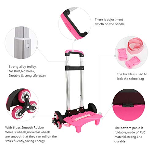 Trolley Carrello per Zaino Carrellino Porta Borsa Trasporto (Pink, 6 Ruote)