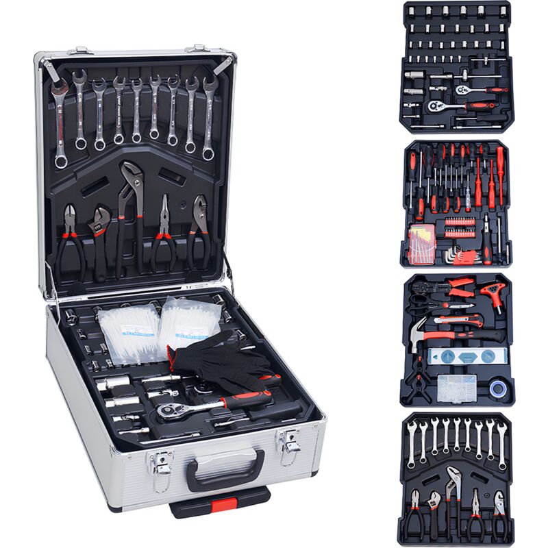 Con il Trolley Cassetta degli Attrezzi da 849 pezzi, hai sempre a portata di mano una piccola officina portatile. Questa pratica e funzionale valigia a trolley, totalmente realizzata in alluminio anodizzato, è progettata per offrire la massima comodità durante i tuoi lavori, grazie alle sue ruote rinforzate e al manico telescopico allungabile fino a 50cm. Al suo interno, troverai quattro scomparti che ti consentiranno di organizzare in modo pratico ed ordinato ben 849 utensili ed accessori inclusi nella cassetta. Gli accessori sono di alta qualità, tutti realizzati in acciaio cromo vanadio con finitura satinata. Indipendentemente dalle tue esigenze, avrai sempre a portata di mano gli strumenti perfetti per qualsiasi lavoro, organizzati in modo pratico e ordinato. Questo completo set di attrezzi non solo ti offre la comodità di una piccola officina portatile, ma garantisce anche la massima versatilità. garantisce anche la massima versatilità per ogni tuo lavoro. Che tu sia un