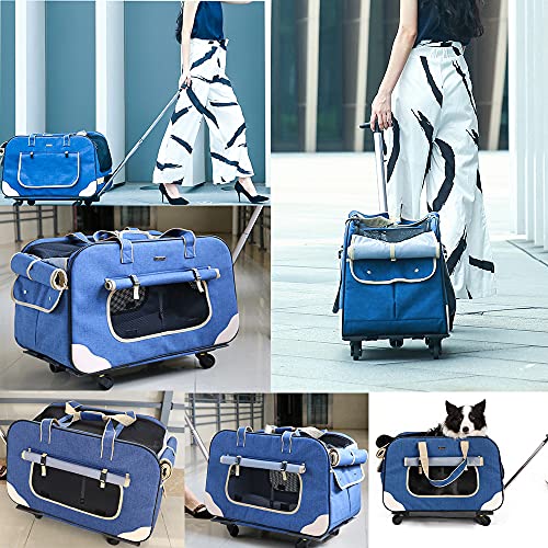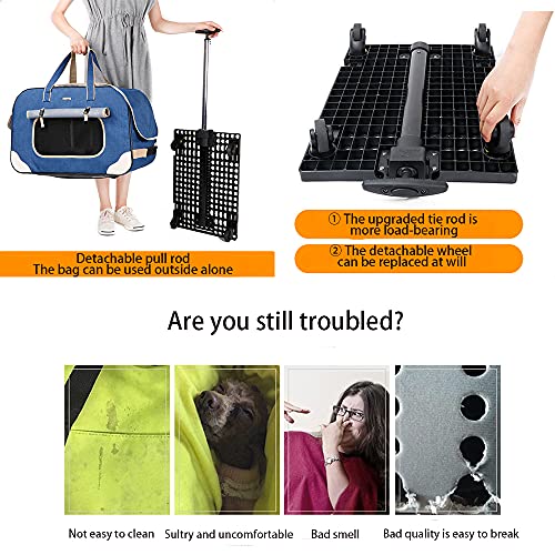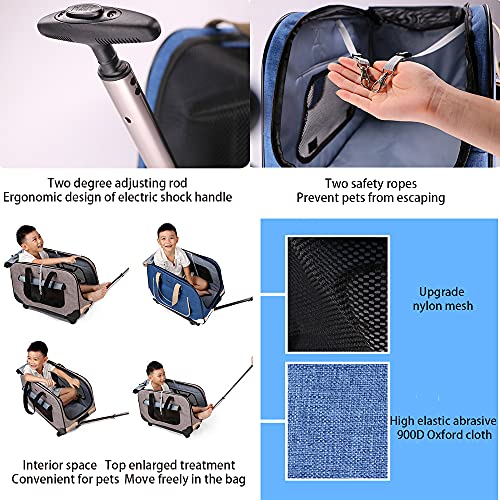 Trolley a quattro ruote per animali domestici, per cani di taglia media grande con ruote rimovibili, manico telescopico e finestre in rete,per animali domestici fino a 20 kg (grigio)