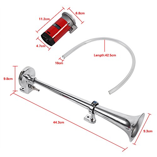 Materiali di alta qualità: questo clacson ad aria a tromba singola è realizzato in zinco cromato di alta qualità con una costruzione solida, che lo rende sicuro, resistente alla corrosione e alla ruggine per offrirti prestazioni stabili e la massima durata.