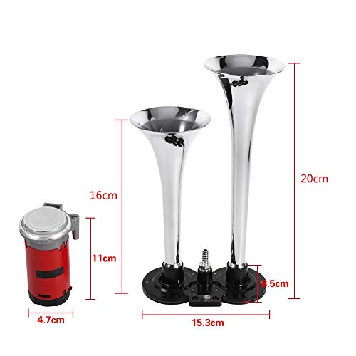 Materiale di alta qualità: tromba d'aria a doppia tromba Realizzata in zinco cromato, per garantire la massima resistenza e durata per un uso duraturo.La buona qualità non solo può fornire una garanzia più sicura per la tua vita, ma anche buoni materiali possono aumentare la vita del prodotto. nuova e di alta qualità, la produzione di alta qualità ti offre una garanzia di alta qualità.-Tromba d'aria