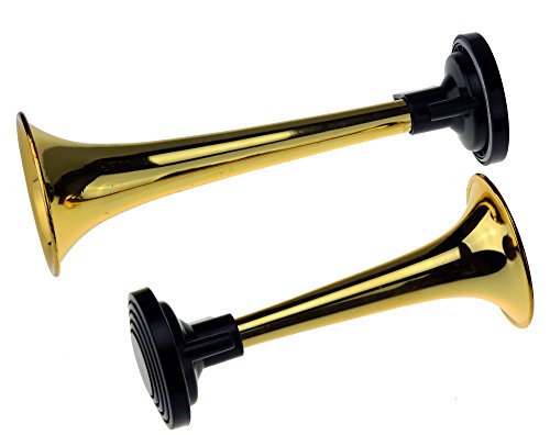 Tromba pneumatica a 2 cornetti, con compressore, 12 V, 135 dB, per camion, auto, SUV, camper, furgoni, barche o qualsiasi altro veicolo con impianto elettrico da 12 V (colore oro)