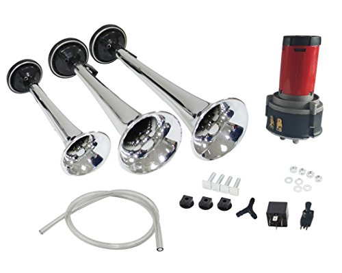 Tromba a 3 suoni ad aria compressa, compressore 12 V, per automobile, camion, caravan, bus, set in argento cromato, universale