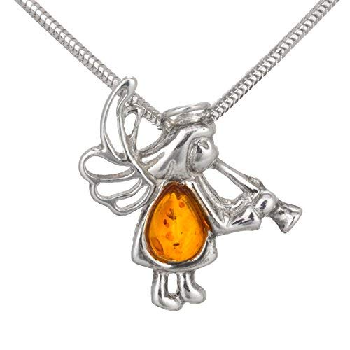 Trombone da ragazza, angelo custode in argento sterling 925, con ambra #1074, Argento sterling, ambra
