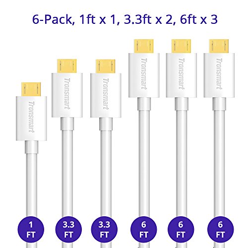 Tron Smart [6-Pack] Premium-Micro-USB-cavo (0, 3mx1 + 1, 05mx2 + 1, 82mx3) high Speed USB 2,0 - processi-cavo Samsung, Nexus, LG, Motorola e altri (bianco) Android-dispositivo