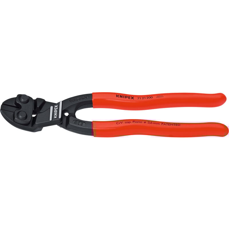 Elevato rendimento di taglio grazie alla speciale trasmissione a leva con sforzo relativamente basso. Taglienti temprati a induzione (circa 64 HRC). Tronchese bonderizzato nero, manici rivestiti in plastica. Testa piegata a 20° per tagli a livello. Uso: Per fili con resistenza alla trazione fino a 2000 N/mm2. Materiale: Acciaio al cromo-vanadio, forgiato e temprato in bagno d'olio. Dati tecnici Testa piegata Grad 20 Tagliente temprate Con molla no Impugnatura rivestiti in plastica Materiale Acciaio elettrico al cromo-vanadio Superficie bonderizzati neri Denominazione originale prodotto CoBolt® Tipo di prodotto Pinza tagliente Lunghezza complessiva, mm 200 Per filo di acciaio dolce fino a ⌀, mm 6 Per filo di acciaio semiduro fino a ⌀, mm 5,2 Per filo armonico fino a ⌀, mm 3,6