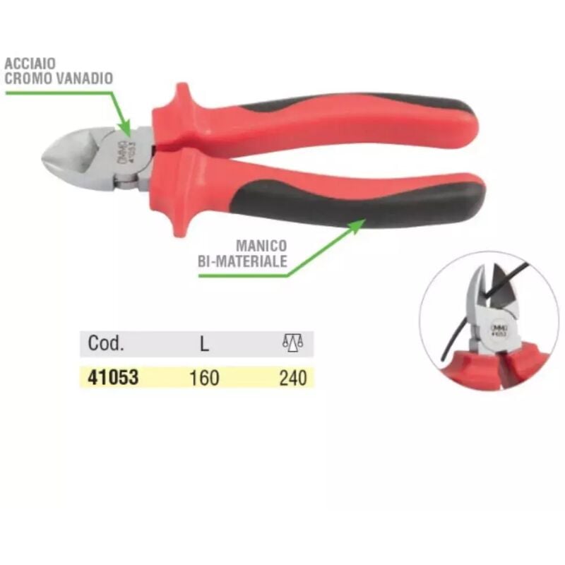 Tronchese OMMA a taglienti diagonali in acciaio al cromo vanadio - cromate, con impugnatura in bi-materiale Lunghezza totale 160 mm