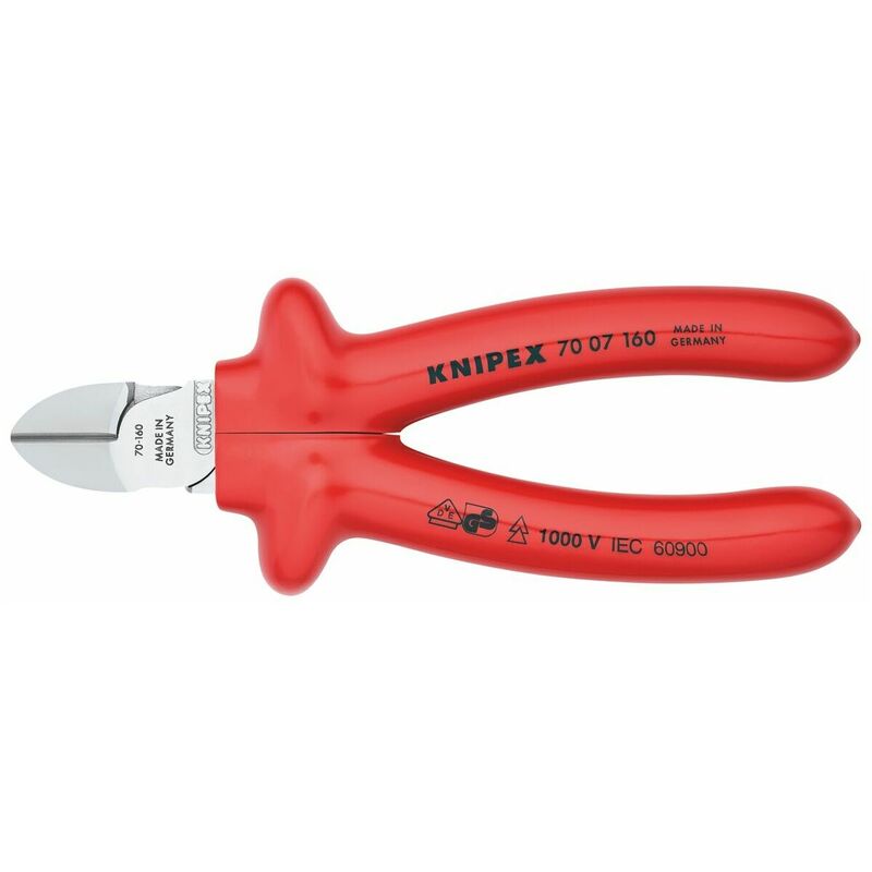 Forma sottile con taglienti temprati a induzione (ca. 62 HRC). Pinza cromata, manici rivestiti in plastica, isolata. Isolate a norma DIN EN IEC 60900 / VDE 0682-201 per lavorare sotto tensione fino a 1000 V. Norma: DIN ISO 5749 Materiale: In acciaio speciale per utensili, forgiato e temprato in bagno d'olio. Dati tecnici Con molla attivabile no Impugnatura isolati Materiale Acciaio speciale per utensili Tronchese laterale ad elevate prestazioni no Superficie cromato Processo di produzione Taglienti temprati a induzione (ca. 62 HRC) Tipo di prodotto Pinza tagliente Lunghezza complessiva, mm 180 Capacità di taglio filo dolce fino a ⌀, mm 4 Capacità di taglio filo duro fino a ⌀, mm 2,5