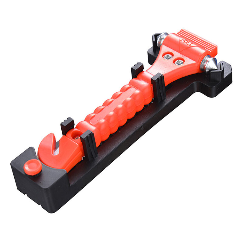 Duro martello a doppia testa in tungsteno per spaccare rapidamente una porta o un finestrino dell'auto. Lama affilata per tagliare facilmente la cintura di sicurezza. Manico in plastica arancione brillante per una presa sicura. Progettato per sfuggire a un'auto che affonda o in fiamme che si è ribaltata o si è schiantata. Supporto di protezione incluso per riporlo in sicurezza. Riponilo nella console centrale o nella portiera lato guida.