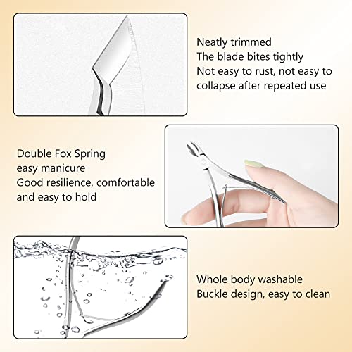 【Maniglia a Presa Facile】: Ergonomico e facile da impugnare maniglia ti dà più controllo. Cuticle nippers doppia molla design cuticola clippers con lama sarà facilmente e precisamente tagliare la cuticola in eccesso e la pelle morta dura.