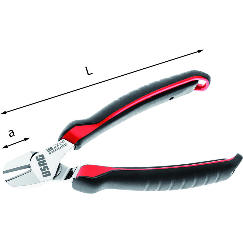 TRONCHESI A GRANDE EFFETTO A TAGLIENTE DIAGONALE Testa arrotondata per tagli anche su piano Taglio pulito e preciso anche su diametri maggiori Taglienti ulteriormente temprati ad induzione Permettono il taglio di filo metallico dolce, di media durezza e duro Fulcro più vicino al tagliente per una riduzione dello sforzo in fase di taglio Cerniera aperta con articolazione forgiata Impugnature ergonomiche bimateriali Asole di aggancio alle estremità per sistemi anticaduta Esecuzione cromata Codice L mm 2000 N/mm² Ø max mm a mm Q.tà x conf. U01880152 180 2,2 18 1 U01880153 200 2,5 22 1