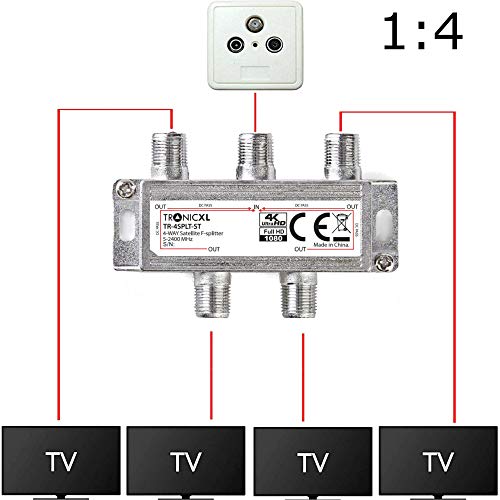 TronicXL Distributore digitale satellitare a 4 vie per antenna, cavo DVBC DVBS DVBT DVBS2 DVBT2 splitter HD TV 4x TV switch TV Switch morbido connettore F cavo di alimentazione BK unicable