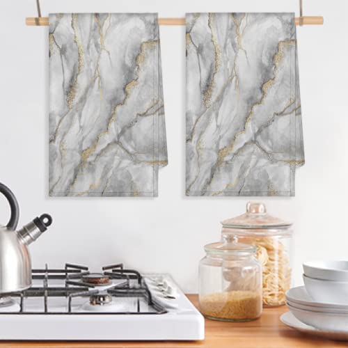 TropicalLife Asciugamani da cucina con texture in marmo oro bianco morbido asciugamano riutilizzabile asciugamano da tè assorbente asciugamano per piatti, 45 x 72 cm, set di 2