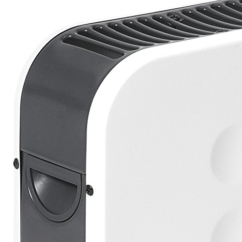 Vantaggi per la pratica: pratiche maniglie per un rapido cambio di posizione/grandi piedini per una posizione sicura, pronta per il montaggio inclusa nella confezione/grande griglia di scarico per la massima convezione/interruttore di funzionamento a più livelli con spia di controllo di funzionamento integrata, tre livelli di riscaldamento regolabili: 750, 1.250 e 2.000 Watt/termostato regolabile in modo continuo: il dispositivo si spegne automaticamente per mantenere la