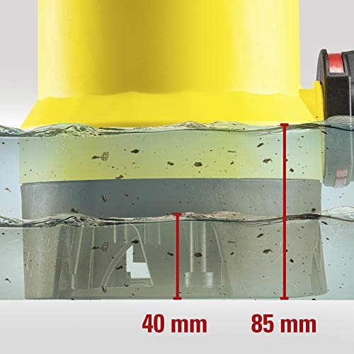 Il resistente alloggiamento in plastica impermeabile all'acqua della pompa sommersa è stato realizzato per impieghi sott'acqua a una profondità di massimo 7 metri. A partire da un livello dell'acqua di 85 mm, la pompa sommersa avvia il processo di pompaggio fino al raggiungimento di un'altezza massima di aspirazione di 40 mm.